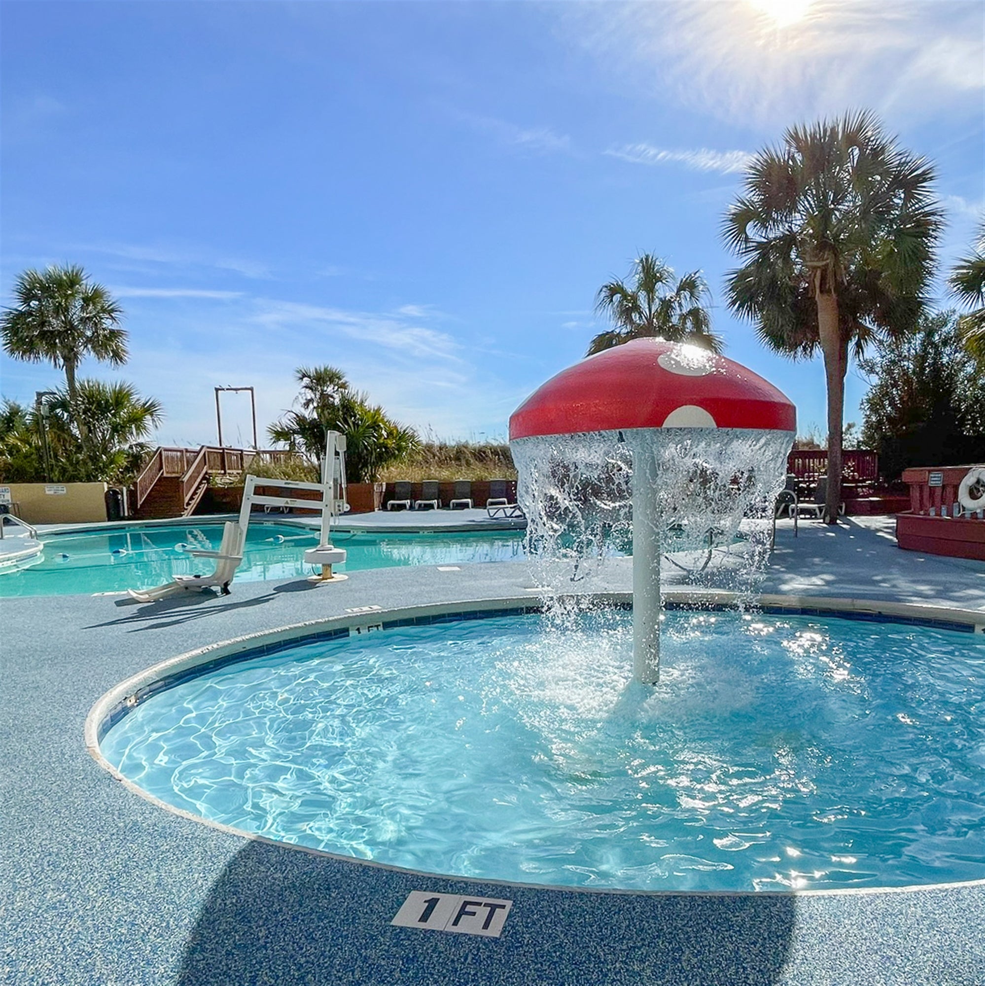 Beach Cove Resort offers a family-friendly oceanfront retreat in North Myrtle Beach across the street from Barefoot Landing, featuring spacious suites with full kitchens, a lazy river, multiple pools, and easy access to local attractions.