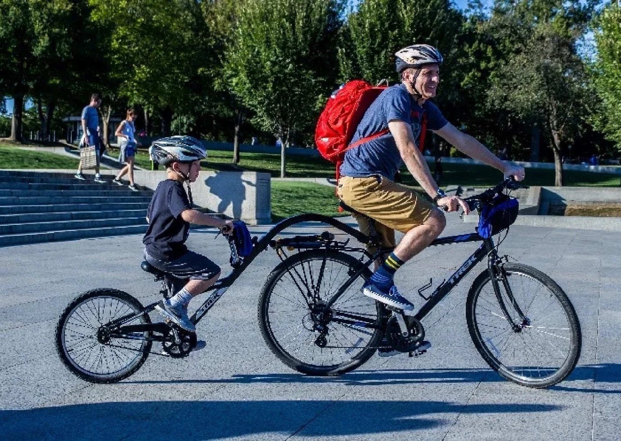 Yes, bike rentals are available for adults as well as kids bikes. Double trailers for toddlers and tag-a-long attachments for young children are available at an additional cost upon request. Please note that children must be accompanied by an adult with a valid photo ID to be provided with a bike rental.