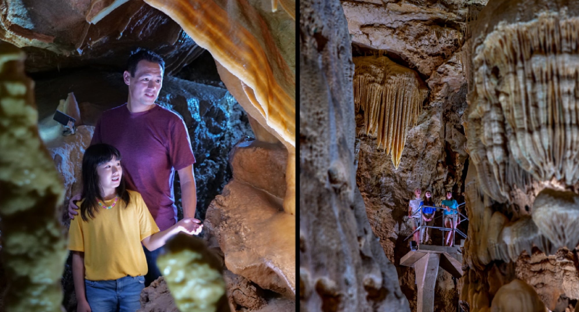 The Discovery Tour is the most popular and largest tour, featuring massive rooms and spectacular formations. The Hidden Wonders Tour is a newer and more intimate tour, featuring delicate formations, a sound and light show, and a fun ride back to the surface.