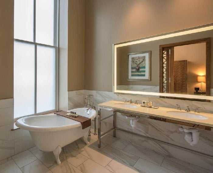 The Crawford Hotel features luxurious guest rooms and suites equipped with accessibility features such as large doorways for wheelchair movement, accessible roll-in showers with grab bars and seats, lowered sinks, and visual fire alarms. Accessible areas include the public entrance, lobby, guest rooms, restaurants, and event spaces, all accessible via ADA-compliant elevators. Additional amenities include closed caption televisions, a non-smoking environment, automatic doors, and an accessible washroom on the lower lobby level, ensuring a comfortable stay for all guests.