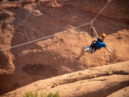 Zipline Moab! Experience six exhilarating zip lines in this 2.5-hour Raven's Rim Moab zipline tour that begins with a rugged 4x4 off-road ride to the cliff faces overlooking Moab. Zip across six steel cables over sheer sandstone cliffs and canyons. Zip to a 100-foot suspension bridge where you'll traverse the gap of two sandstone fins. See the 13,000-foot La Sal Mountains in the distance, and more from your perch on Raven's Rim. Book this popular Moab Adventure Center zipline tour for an adventure of a lifetime!